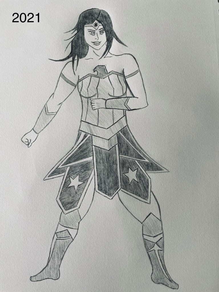 The last two you can see below were actually done on paper. They were two of the last drawings I didn’t before I started learning digital drawing, and I consider them two of my better drawings thus far. I’m particularly proud of them because I’ve drawn both characters before (Wonder Woman, and Hayato from Fire Emblem: Fates), but never full body sketches like that. Just a year ago, I could only draw characters from the chest up, maybe from the waist up if I was feeling particularly ambitious. Thanks to the lessons I’ve taken now, I’m becoming much more capable of drawing full characters.